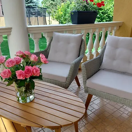 Goście mają dostęp do pełnowymiarowej kuchni z kuchenką mikrofalową, lodówką i przyborami kuchennymi oraz urządzeniem do parzenia kawy/herbaty. Specjały kuchni europejskiej serwowane są w restuaracji Svájci Lak Pension and, która znajduje się mniej niż 1 km od obiektu. Na miejscu dostępny jest taras, a w pobliżu willi można uprawiać badminton.